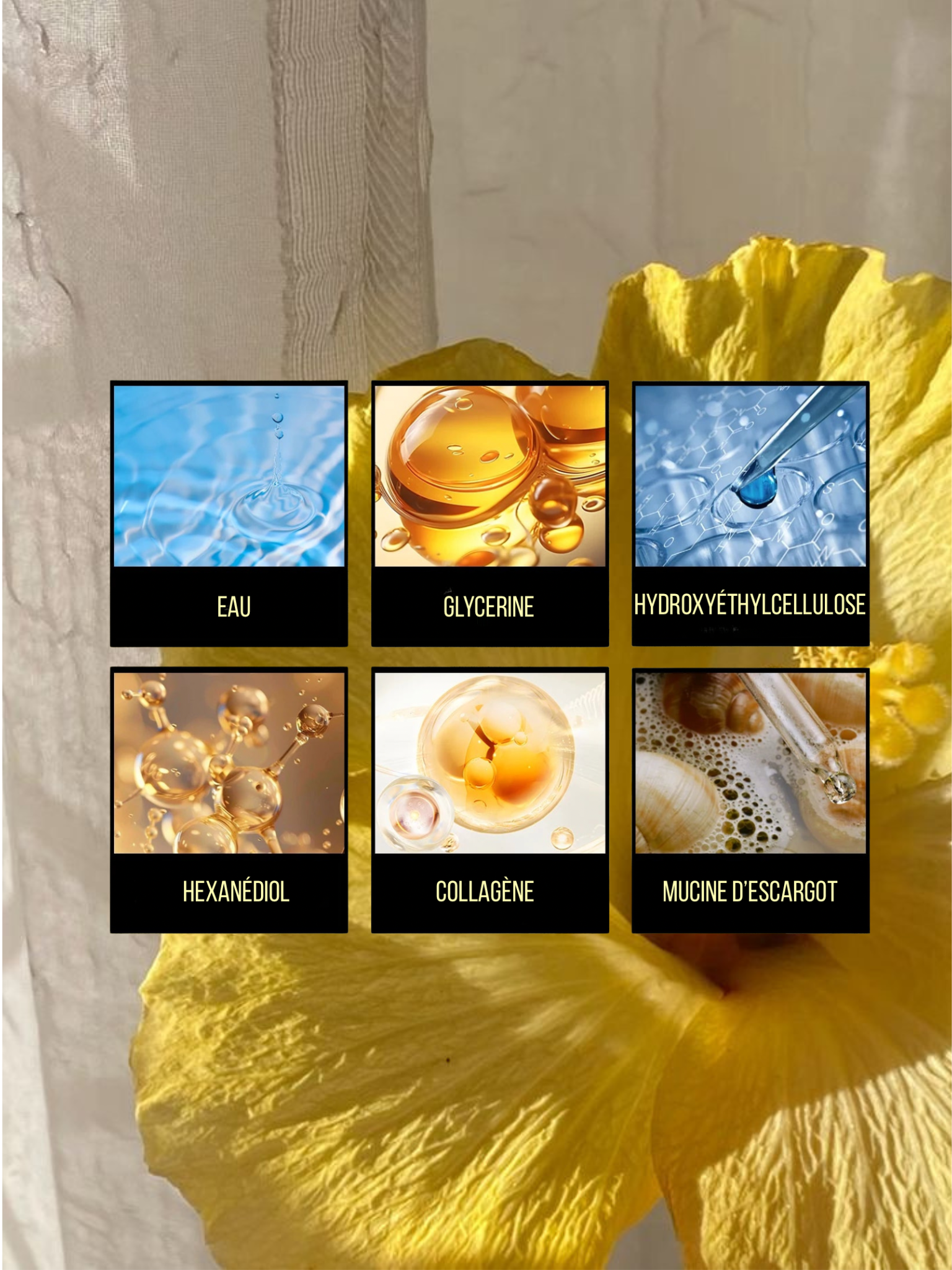 Chaque ingrédient a été choisi pour son efficacité prouvée, afin de nourrir, réparer et sublimer votre peau jour après jour.
